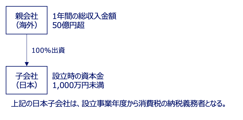 資本金の額が1,000万円未満である日本子会社については、原則として、設立事業年度とその翌事業年度は、消費税の納税義務が免除されておりました。